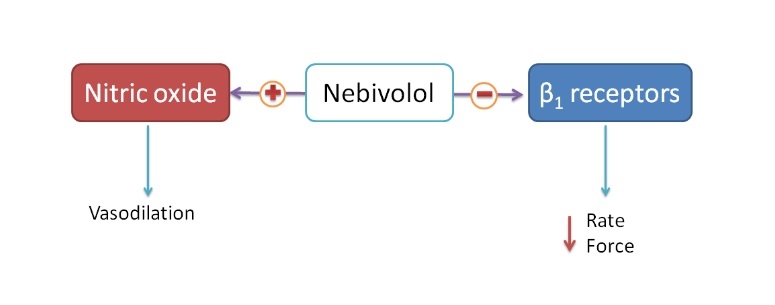 네비볼롤은 기존 베타차단제에 비해 현저하게 베타 1 선택성이 높으며 NO의 양을 증가시켜 심박출량을 유지시키면서