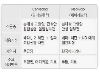 에도 선택성이 약해집니다. (labetalol, carvedilol, celiprolol, nebivilol: 혈관확장작용이 있는 베타차단제)