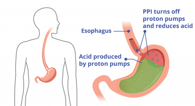 PPI는 혈중 반감기가 짧지만 체내에서 가장 많은 산을 분비시키는 proton pump를 억제하여