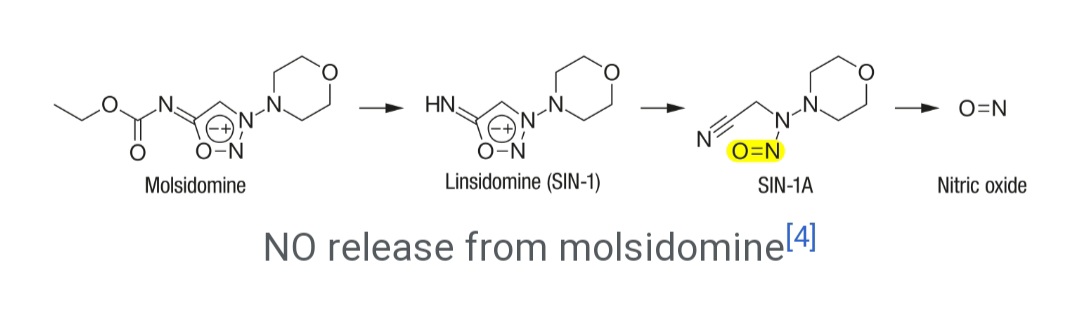 molsidomine은 작용기전과 효능면에서 지속형 질산염과 유사합니다.