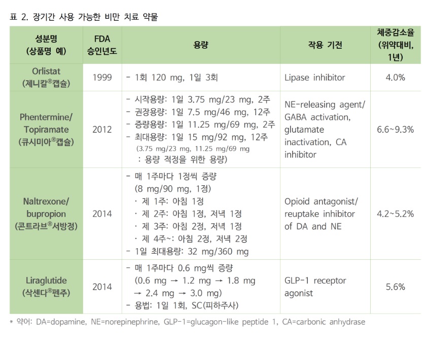 권고됩니다. 약물치료대상은 BMI 25kg/m2이상인 환자에서 비약물치료로 감량에 실패한 경우,