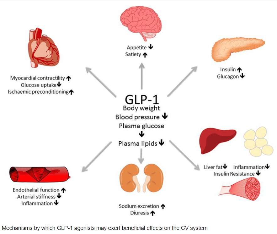 GLP-1은 췌장에서 인슐린의 분비를 촉진하고 글루카곤 분비는 억제합니다.