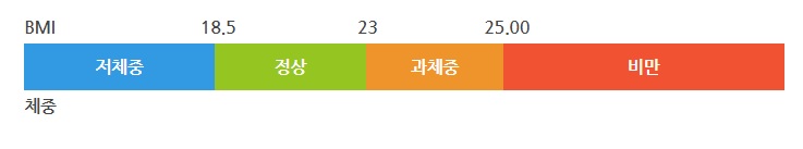 **체질량지수(BMI, body mass index)=몸무게(kg)/키(m)의 제곱