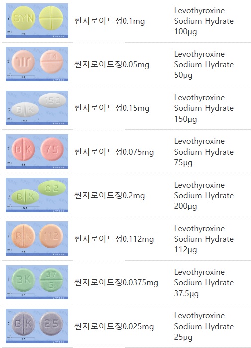 씬지로이드 외에 갑상선저하증에 사용되는 약으로 합성 T3인 테트로닌정(liothyronine sodium 5 mcg)이 있습니다.