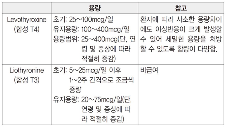 용량은 환자의 나이와 기저질환, 갑상선저하증의 중등도와 질병기간에 따라 달라집니다.