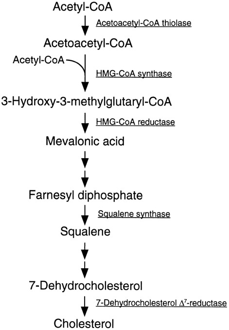 콜레스테롤 생합성 과정에서 HMG CoA reductase는 속도를 조절하는 효소로
