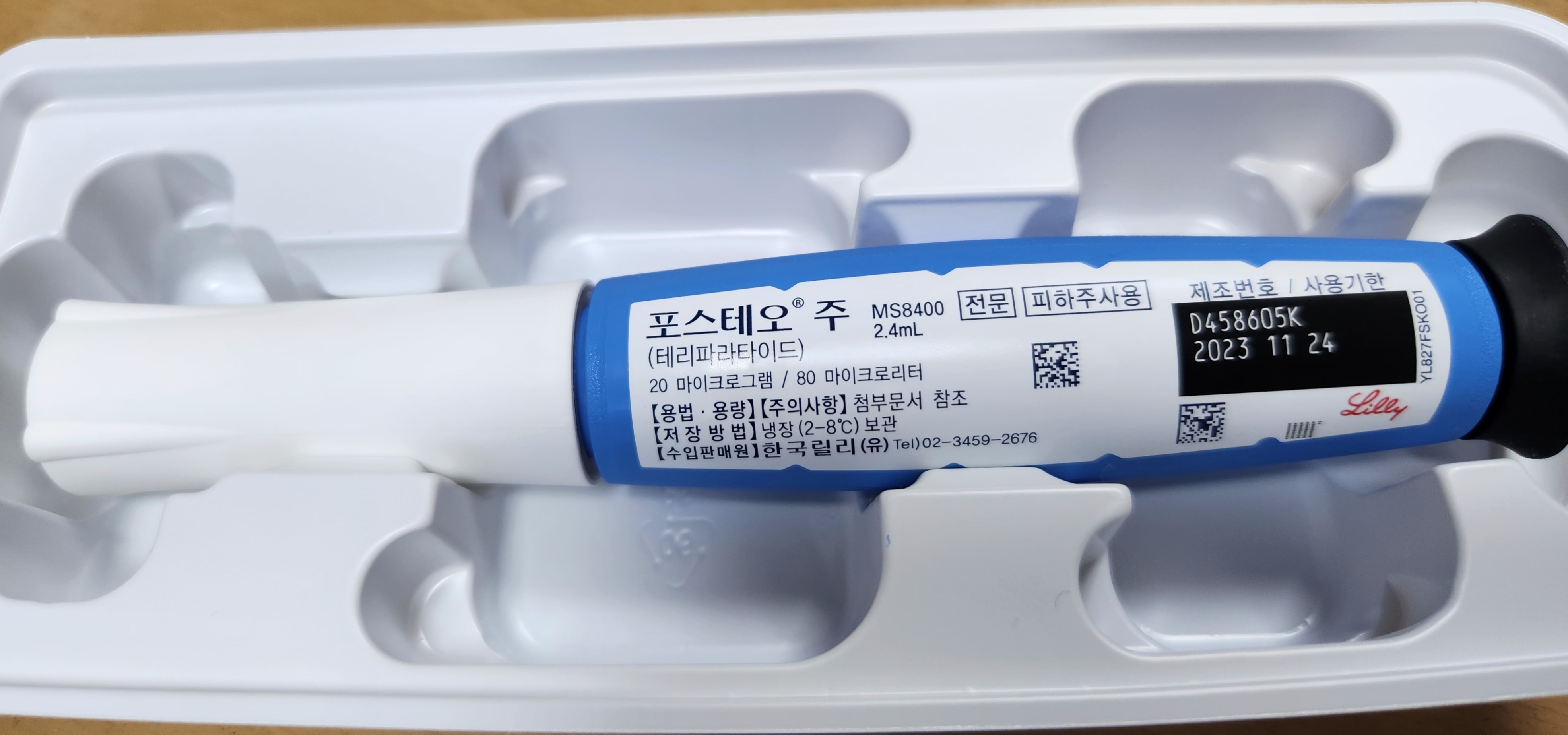포스테오와 마찬가지로 1일 1회 자가주사 형태로 사용하는 펜타입제품으로 포스테오(일체형)와 달리 교체형