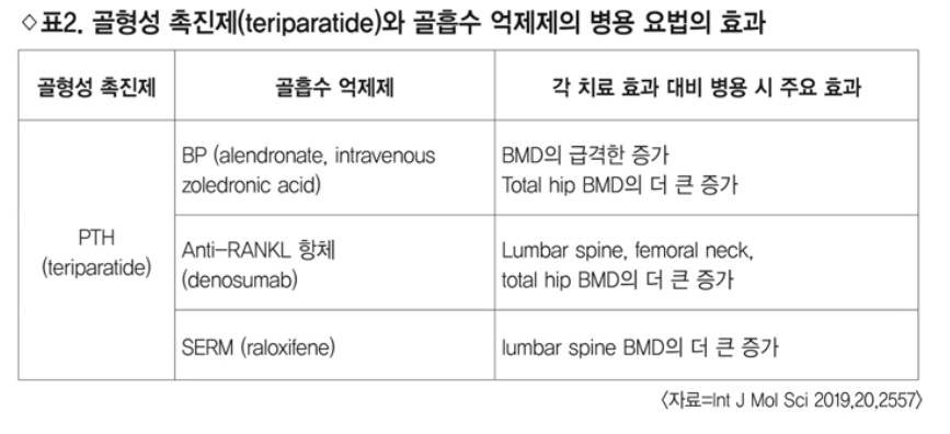 일반적으로 PTH는 골흡수 억제제보다 우월한 골량증가효과를 나타냅니다.