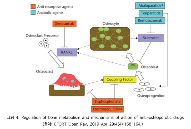 골다공증의 치료제로 사용되는 약물에는 '골파괴억제치료제'와 '골형성촉진'치료제로 나뉘는데
