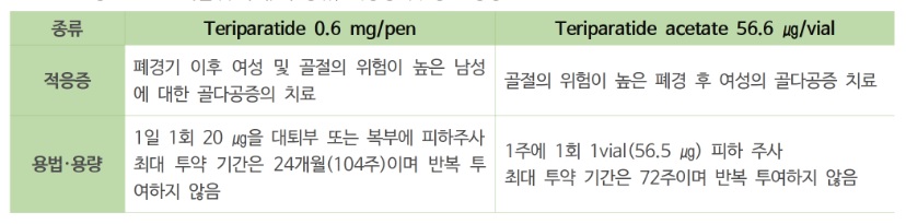 PTH(parathyroid hormone, 부갑상선 호르몬) 계열 약물인 teriparatide,abaloparatide는