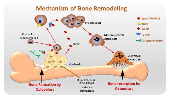 어린 시절에는 뼈형성이 재흡수를 초과하고 노화가 진행되면서 흡수가 형성을 초과합니다.